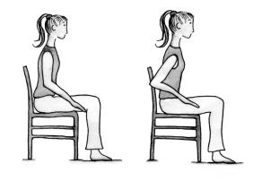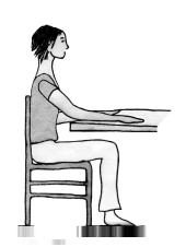 - Siéntese en una silla muy cerca de una mesa con la espalda apoyada en el respaldo.