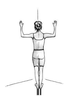 - Póngase de pie, volteada contra la esquina de la pared y con los pies aproximadamente de ocho a diez pulgadas de la esquina de la pared.