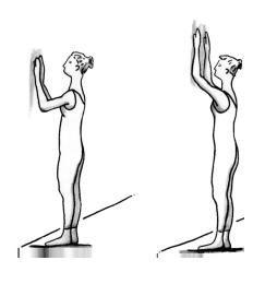 - Coloque sus manos en la pared y utilice sus dedos para “subir la pared”, tratando de subir lo más que pueda hasta sentir un estiramiento.